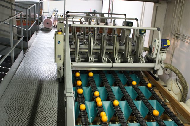 The grading process starts with a Black Light Room, culling out any fruit that show signs of rot. After that the fruit is washed and dried and sent to the state-of-the-art AutoLine grader, which automatically pre-grades the fruit, using 3D weight density scanning, culling fruit with scarring. It also separates between fancy, choice and standard.